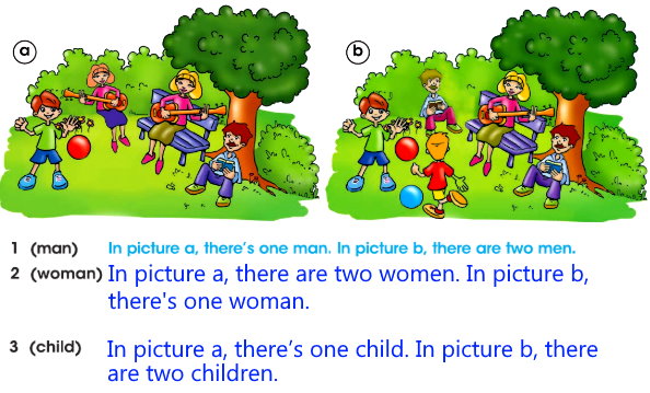 3. In picture a, there’s one child. In picture b, there are two children. – На картинке a один ребенок. На картинке b двое детей.