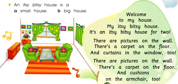 Ответ: An itsy bitsy house is a small house. – Крошечный домик – это маленький домик.