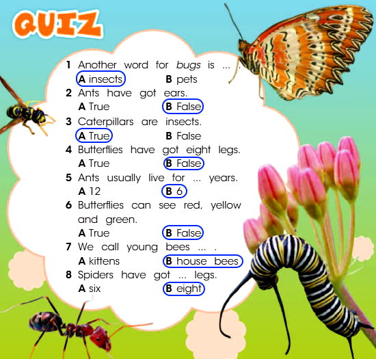3. It’s a Bug’s World! Do the quiz and find out how much you know about bugs. – Это мир насекомых! Пройдите тест и узнайте, насколько хорошо вы знаете насекомых.
