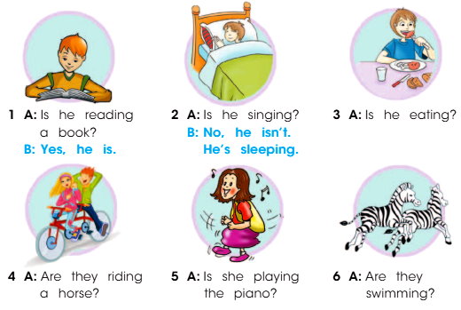 B: No, he isn’t. He’s sleeping. – Нет. Он спит.
