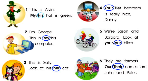 1. This is Alvin. His hat is green. – [З’ис из Элвин. Хиз хэт из гри:н] – Это Элвин. Его шляпа зелёная.