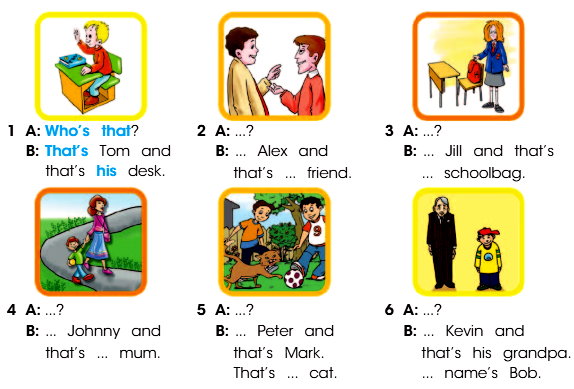 B: That’s Kevin and that’s his grandpa. His name’s Bob. – Это Кевин, а это его дедушка. Его зовут Боб.
