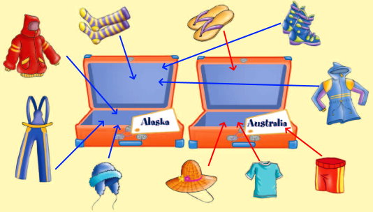 1. Pack your suitcase! Look and match. – Собирай чемодан! Посмотри и сопоставь.