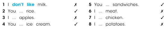 2. Complete the sentences with like or don’t like. – Завершайте предложения словами «нравится» или «не нравится».