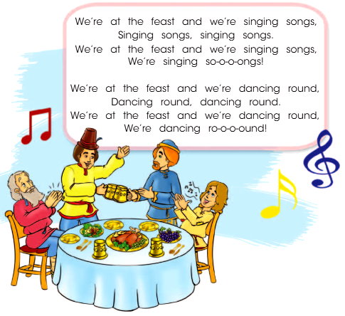 - We’re at the feast and we’re singing songs, – [Уиэ эт зэ фист энд уиэ сингин сонз,] – Мы на пиру и мы поём песни,