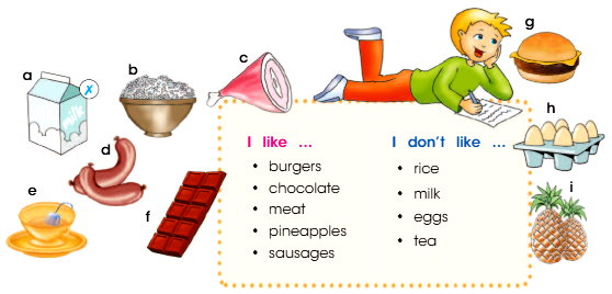 - say what food I like/don’t like – сказать, какая еда мне нравится / не нравится